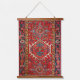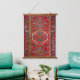 Beautiful hanging tapestry features an antique oriental rug pattern which is primarily red with traces of black, blue and tan. This is a wonderful way to add some elegance and a classic look to one of your rooms.