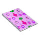 Notebook in a pattern of assorted antique Christmas tree ornaments, in deep fuchsia pink, teal green, soft gold and violet, against a pastel orchid background