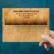 Antique Paper Look Personalised Rustic Envelopes for him. Designed for our vintage sports invitations and rustic invitations. Type in your Return Address Envelope text or Delete it. Choose several personalised envelope sizes. CALL Designers Rod or Linda: 239-949-9090 for CHANGES to the design, product, personalisation, etc. We will create RSVP's, Invitations, Thank You's, Rustic Party Supplies for men and women.