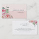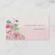 Elegant and chic business cards feature a colorblock stripe background in tone on tone blush pink with a spray of pink watercolor peony flowers blooming from the corner. Personalise with your name and business name, title or occupation. Add your full contact details to the back in a chic mix of modern sans serif and italic lettering, adorned with smaller peonies on the upper right. A chic and feminine choice for makeup artists, hair stylists, aestheticians or any occupation.