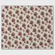 A vintage antique wallpaper design of burgundy red roses and green leaves on a tan suede leather pattern.