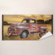 Antique Red Truck Farm Field Rooster Hen Bath Towel Set