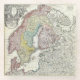 This coaster features an antique colour map of Scandinavia, including Norway, Sweden, and Denmark. The title, "Les Trois Couronnes du Nord," is surrounded by an illustration of angels. The original map by Johann Baptiste Homan was published c.1720.