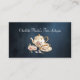 Elegant distressed dark blue business card featuring a old ivory elegant ceramic teapot and tea cup decored with old english roses. This example is created to fit an antique shop or collector but can be just as charming for a cosy café or teahouse, as well as interior stylists, artisan bakeries, home and garden shops, or even a english styled bed and breakfast.