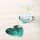 Gold, antique keys with gears and dials hang on gold chains on luminous green background.