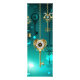 Gold, antique keys with gears and dials hang on gold chains on luminous green background.