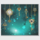 Antique Skeleton Keys on Green Background Wrapping Paper