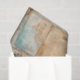 Step back in time with this intricately layered vintage decoupage paper, designed to look like an open explorer's trunk or travel journal. The composition features an antique world map, a rustic leather satchel, a classic retro camera, and delicate handwritten notes paired with dried yellow wildflowers. This design is perfect for upcycling vintage suitcases, creating museum-style scrapbook pages, or adding a sophisticated industrial or dark academia touch to your DIY home decor.