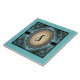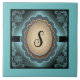Personalise this Unique "One of a Kind" Turquoise Lace and Black Monogram Ceramic Tile! It Features Elegant Antique Turquoise Lace and a Tan Decorative Oval on a Blended Turquoise and Black Background!