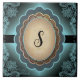 Personalise this Unique "One of a Kind" Turquoise Lace and Black Monogram Ceramic Tile! It Features Elegant Antique Turquoise Lace and a Tan Decorative Oval on a Blended Turquoise and Black Background!