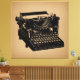 An antique typewriter design with a classic illustrated old fashioned typewriter in black on an aged paper style brown background!