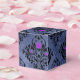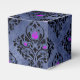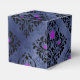Dazzling vintage floral damask pattern favour box in accents of navy blue, black and purple.