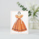 This postcard features a sketch/drawing of an antique Victorian doll in an orange dress.