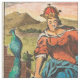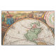 Antique world map from the 1700s with hemispheres in vintage colours and painting vignettes border.