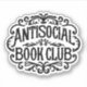 Antisocial book club sticker. Dark academia vintage books aesthetic. Introvert girl anti social reader reading squad gifts.
