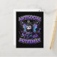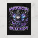 A moody, headphone-wearing butterfly perched on a glowing skull scrolls a phone amid dark florals in a whimsical gothic style.