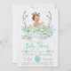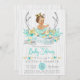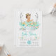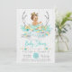 Tribal baby shower invitation with pretty teal blue and gold floral antlers and banner with an adorable brunette baby girl wearing a pretty mint tutu and gold crown on a rustic white wood background. You can easily customise this beautiful mint and gold tribal baby shower invitation for your event by simply adding your details. This is a printed design with no real glitter, etc.