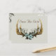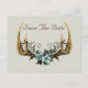Antlers and Roses. He is all sportsman, rustic and rugged , antlers and big bucks. She is all soft and feminine, Cyan blue roses and lace, but they are a perfect match. Save the Date card, edit your personal information on the back.