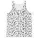 This tank is silky feeling and comfortable. The ants are a little bigger than I thought they would be but the design is very eye catching. People always ask where I got this. The sizing is unisex so it does run a little on the large size. I love this tank! The printing is crisp and clear. The color is uniform throughout.