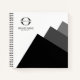 Add your logo to this simple geometric design that features social media icons in white on three colours you can customise to suit your brand. We've chosen gradient greys for this example. This design works well for any professional: accountants, financial consultants, attorneys, notaries, etc; anyone who wants an easily readable notebook to promote your brand. Add your own logo and personal contact information using the provided template. See ID812 to see additional products with this design including matching business cards.