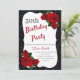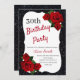 Elegant black glitter and red roses birthday party invitation for women of any age. The age can be changed for any age. Text can be changed to anything to fit your event. Fonts, font colour and text are completely customisable! Paper shape and type can be customised to fit your budget and taste!