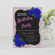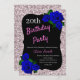 Any Age Birthday Pink Glitter Deep Blue Roses Invitation