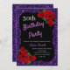Any Age Birthday Purple Glitter Red Roses Invitation