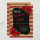Elegant red, gold stripes glitter and red roses birthday party invitation for women of any age. The age can be changed for any age. Text can be changed to anything to fit your event. Fonts, font colour and text are completely customisable! Paper shape and type can be customised to fit your budget and taste!