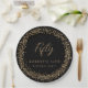 Any Age Black Gold Glitter Birthday Party Paper Plate
