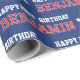 Any Age Happy Birthday Retro Custom Navy Red Wrapping Paper