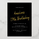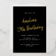 Modern birthday invitations that can be changed to any age. Gold script on a black background.