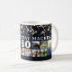 Celebrate any age birthday for him or her with a fun photo collage commemorative keepsake mug featuring 12 square pictures of photo memories through the years and personalised with your custom text and their age. The design features gold streamers and confetti and white lights against a changeable black background. CHANGES: The background colour and text font style, colour, size, spacing and placement can be changed by clicking on CUSTOMIZE FURTHER in the PERSONALIZE section. ASSISTANCE: For help with design modification, personalisation, colour change or transferring the design to another product, contact the designer BEFORE ORDERING via Zazzle Chat or makeitaboutyoustore@gmail.com.