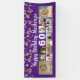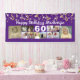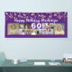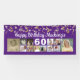 Celebrate any age birthday with a personalised custom colour photo collage banner sign featuring 12 square pictures of photo memories through the years and your custom text and age with gold streamers, confetti and twinkle lights against your choice of background colour (shown in purple). The sample shows HAPPY BIRTHDAY NAME in a modern calligraphy script and age in editable white. The sample is shown on a 2.5x6' indoor banner--other sizes or "outdoor" are available on the ordering page. ASSISTANCE: For help with design modification or personalisation, colour change, resizing or transferring the design to another product, contact the designer BEFORE ORDERING via the Zazzle Chat MESSAGE tab below or email makeitaboutyoustore@gmail.com.