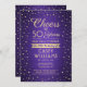 Invite family and friends to an elegant birthday celebration with custom purple and gold party invitations. All wording on this template (including "Cheers to 50 Years") is set up for a 50th birthday, but is simple to personalise for any year or event type. The design features modern glittery confetti dots on a faux brushed metallic background, stylish script calligraphy, and classic vintage art deco typography. Please note that gold is printed colour, not metallic foil. The gender neutral design is also suitable for either a man or a woman. Cheers and Happy Birthday!