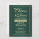 Invite family and friends to an elegant birthday celebration with custom green and gold party invitations. All wording on this template (including "Cheers to 40 Years") is set up for a 40th birthday, but is simple to personalise for any year or event type. The design features a modern striped border on a green ombre background, stylish script calligraphy, and classic vintage art deco typography. Please note that gold is printed colour, not metallic foil. The gender neutral design is also suitable for either a man or a woman. Cheers and Happy Birthday!