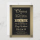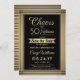 Invite family and friends to an elegant birthday celebration with custom black and faux gold foil save the date party invitations. All wording on this template (including "Cheers to 50 Years") is set up for a 50th birthday, but is simple to personalise for any year or event type. The design features a modern striped faux foil border, stylish script calligraphy, and classic vintage art deco typography. Please note that gold is printed ombre colour, not metallic foil. The gender neutral design is also suitable for either a man or a woman. Cheers and Happy Birthday!