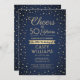 ANY Birthday Cheers Navy Blue and Gold Confetti Invitation