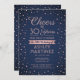 Invite family and friends to an elegant birthday celebration for her with custom navy blue and pink party invitations. All wording on this template (including "Cheers to 30 Years") is set up for a 30th birthday, but is simple to personalise for any year or event type. The design features modern glittery faux rose gold foil confetti dots, stylish script calligraphy, and classic vintage art deco typography. Please note that gold is printed colour, not metallic foil. Cheers and Happy Birthday!