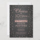Invite family and friends to an elegant birthday celebration for her with custom pink and black party invitations. All wording on this template (including "Cheers to 30 Years") is set up for a 30th birthday, but is simple to personalise for any year or event type. The design features modern glittery faux rose gold foil confetti dots on a faux chalkboard background, stylish script calligraphy, and classic vintage art deco typography. Please note that rose gold is printed colour, not metallic foil. Cheers and Happy Birthday!
