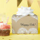Personalise birthday year, large gold monogram and black script name on large diamond heart on gold background.