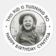 Add an elegant personalised touch to birthday party favours, invitations and thank you notes with custom photo round stickers / envelope seals. The picture and all wording on this template are simple to customise for any year or occasion. The text that reads "This kid is turning 80" and "Happy Birthday" can be changed to Thank you for coming, Look Who's, or the celebration date, etc.(IMAGE PLACEMENT TIP: An easy way to position a photo exactly how you want is to crop it before uploading to the Zazzle website.) The modern black and white design features stylish minimalist vintage typography, and one picture of your choice. Happy Birthday!