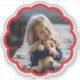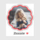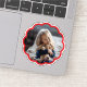 This custom vinyl sticker features your photo displayed inside a round, scalloped frame. The frame color can be customized to match any style or occasion, making it a versatile option for gifts, events, or everyday use. This sticker is perfect for decorating laptops, water bottles, notebooks, and more.