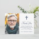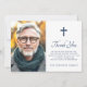 Elegant bereavement sympathy thank you card with photo template and your custom thank you message. Dark blue, simple, elegant cross and accented text and back. You can change all colours in the design tool. Template photo by Chepe Nicoli