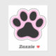 Black and pink (or custom colour) paw print sticker. Colours can be edited with the design tool