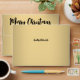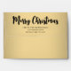 Add an elegant touch to holiday cards with stylish custom black and gold return address envelopes. The greeting on this template is simple to personalise to any wording, such as Merry Christmas, Happy Holidays, Seasons Greetings, or Happy New Year. As an option, change the script typography greeting to your name, and use the rest for the return address only. The design features a gold ombre faux foil exterior, trendy bold script calligraphy and modern minimalist typography. Elegant customised envelopes add a beautiful detail to Christmas cards and holiday party invitations. Please note that gold is printed colour, not metallic foil.