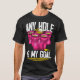 I give wanted to give this a 4 instead of a 5 because these Basic DARK T0shirts run unexpectedly SLIM or Narrow. Which is great if you do not have a potbelly, but I have a paunch. It isn't the shirt's fault that I've got a beer belly. The design and shirt itself is a quality cotton shirt. The color is more of a deep purple, but still a very pretty color. The Basic DARK T-shirts run a bit SLIMMER than the Basic Ts. The neck is a fraction narrower (or seems to be narrower) also. I'm a paunchy middle-aged woman and my neck is 12 inches (31cm) thick and the neckline fell about the same as in the photo of the man, and I had the desire to tug it a bit. So if you're a thick necked man or like loose shirts, be aware these are slimmer shirts. Once I get rid of my lockdown paunch it'll look great. The shirt washed well in cold water with no apparent bleeding. We don't have a dryer, so it hung dry. Did not shrink. Love the colors and the design. The design looks smaller on my shirt than it does on the model on-line. But still, it looks good on the shirt. The printing looks as it does on the model, just the size seems fractionally smaller. Washed garment in cold water, hung dry and design appeared unaffected.