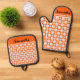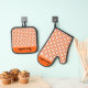 Any Name Cute Floral Daisy Pattern Oven Mitt & Pot Holder Set. Features orange and white daisy pattern. A fresh, happy look with cute daisies to brighten your day. Add your choice of name for a truly personalised touch.