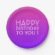 Any Name Editable Happy Birthday Pink Purple Ombre Paper Plate