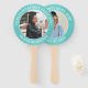 Any Quote 2 Photo Teal Blue and White Graduation Hand Fan