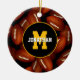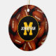 This personalised football themed ceramic ornament features a pattern of seemingly endless, randomly arranged footballs on a black background - personalise with name and monogram on the front and commemorative year on the back - colour theme is black and gold but can be customised to match school team colours or a favourite football team's colours - by katz_d_zynes